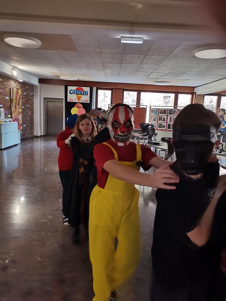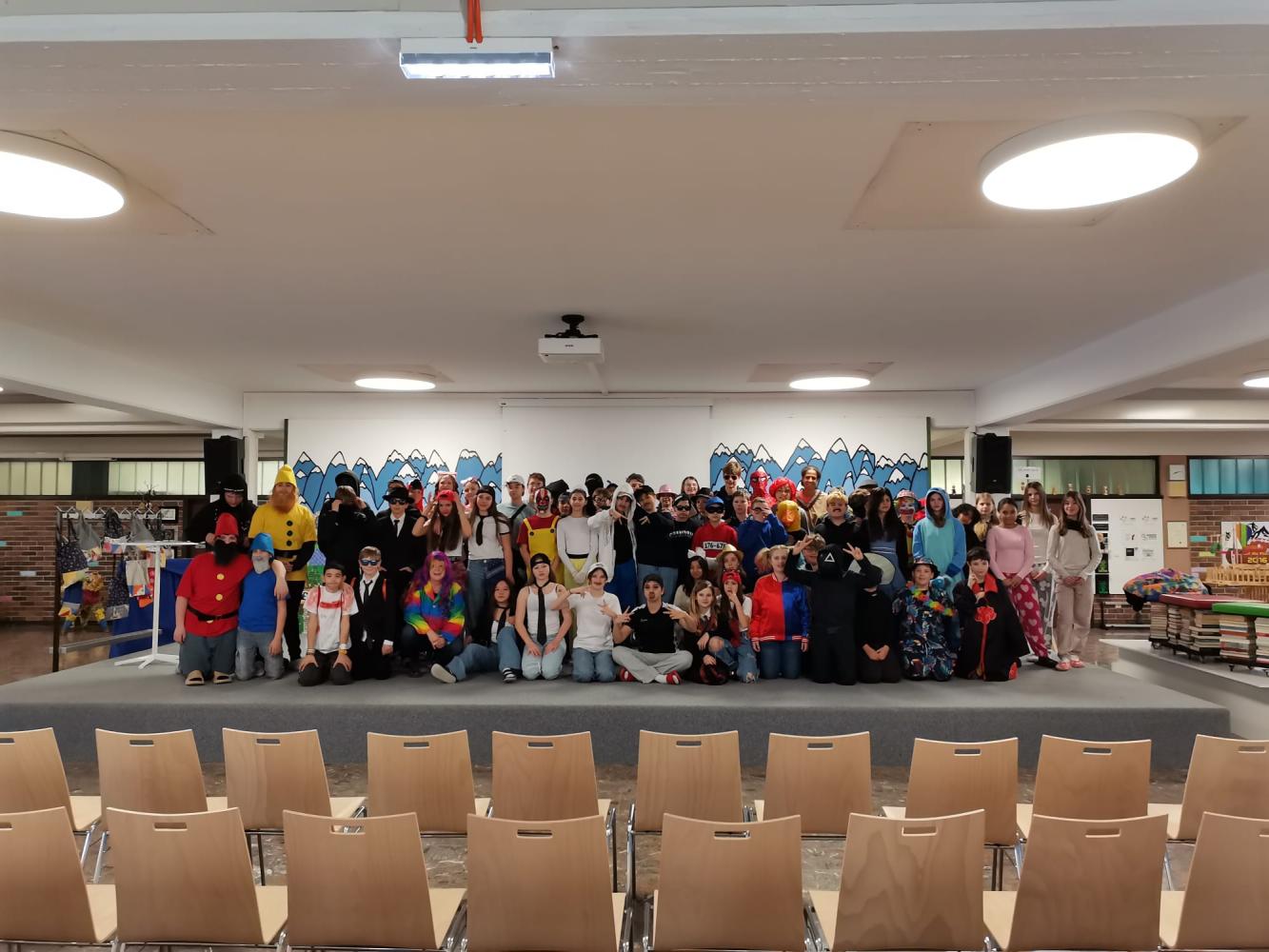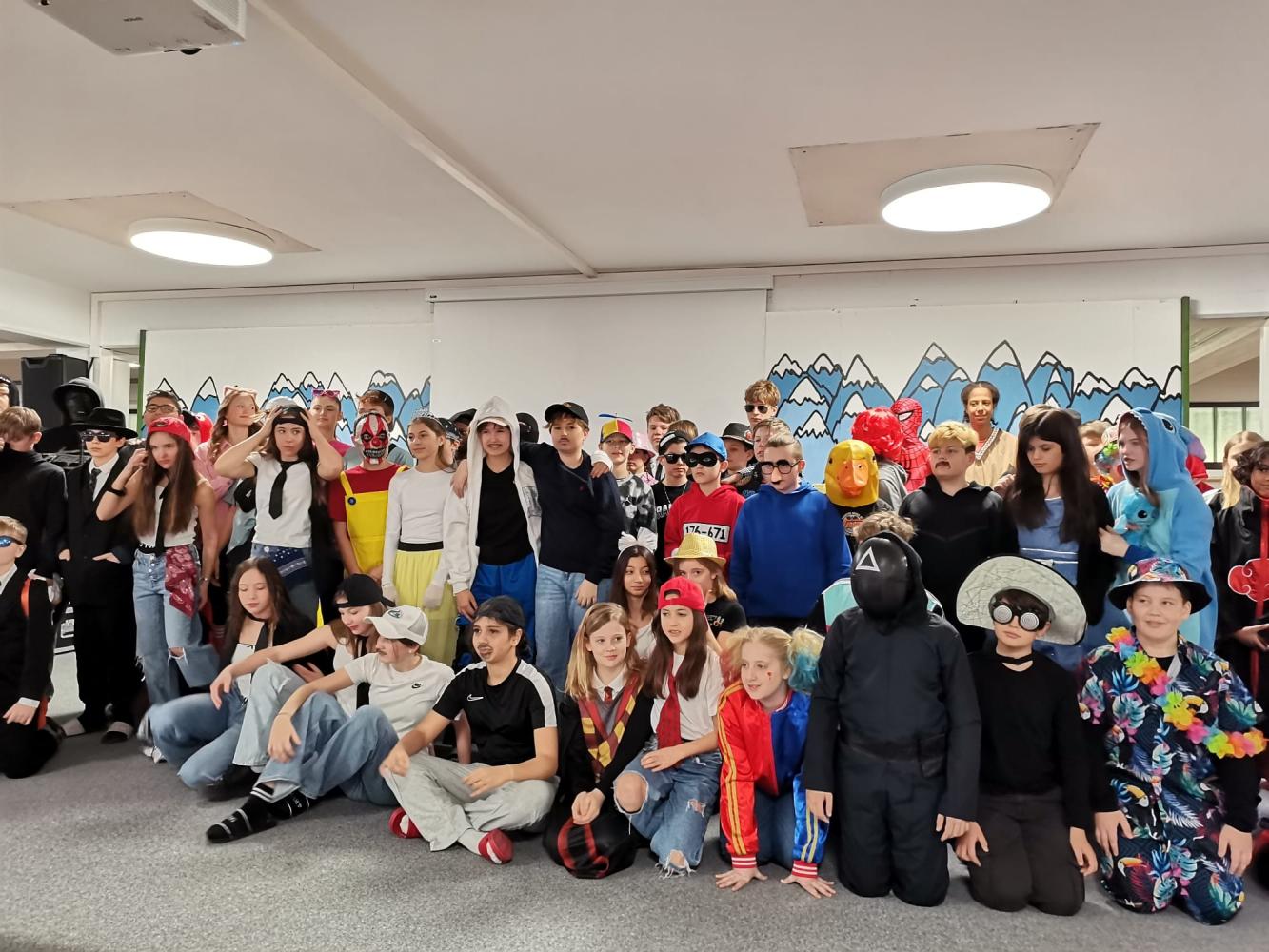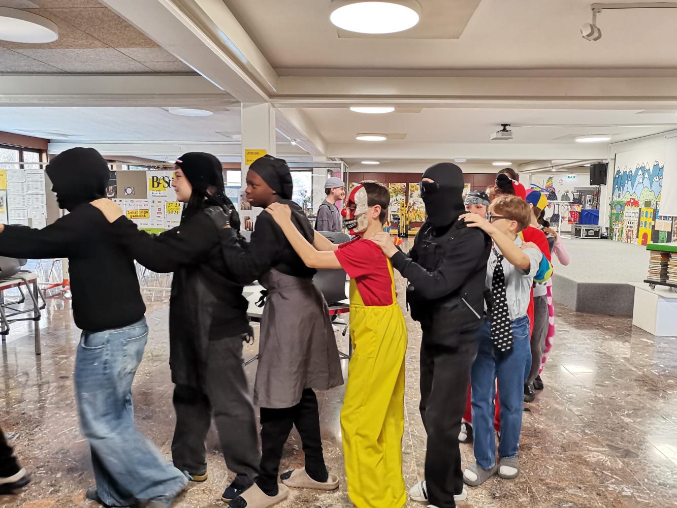 Eine Polonaise durch die Schule von Lisa Robl 09. März 2025 allgemein Anlässlich des heurigen Faschingsdienstags tanzten alle verkleideten Schüler:innen der MS Hötting-West mit Frau Spielmann eine beschwingte Polonaise durch die Schule.