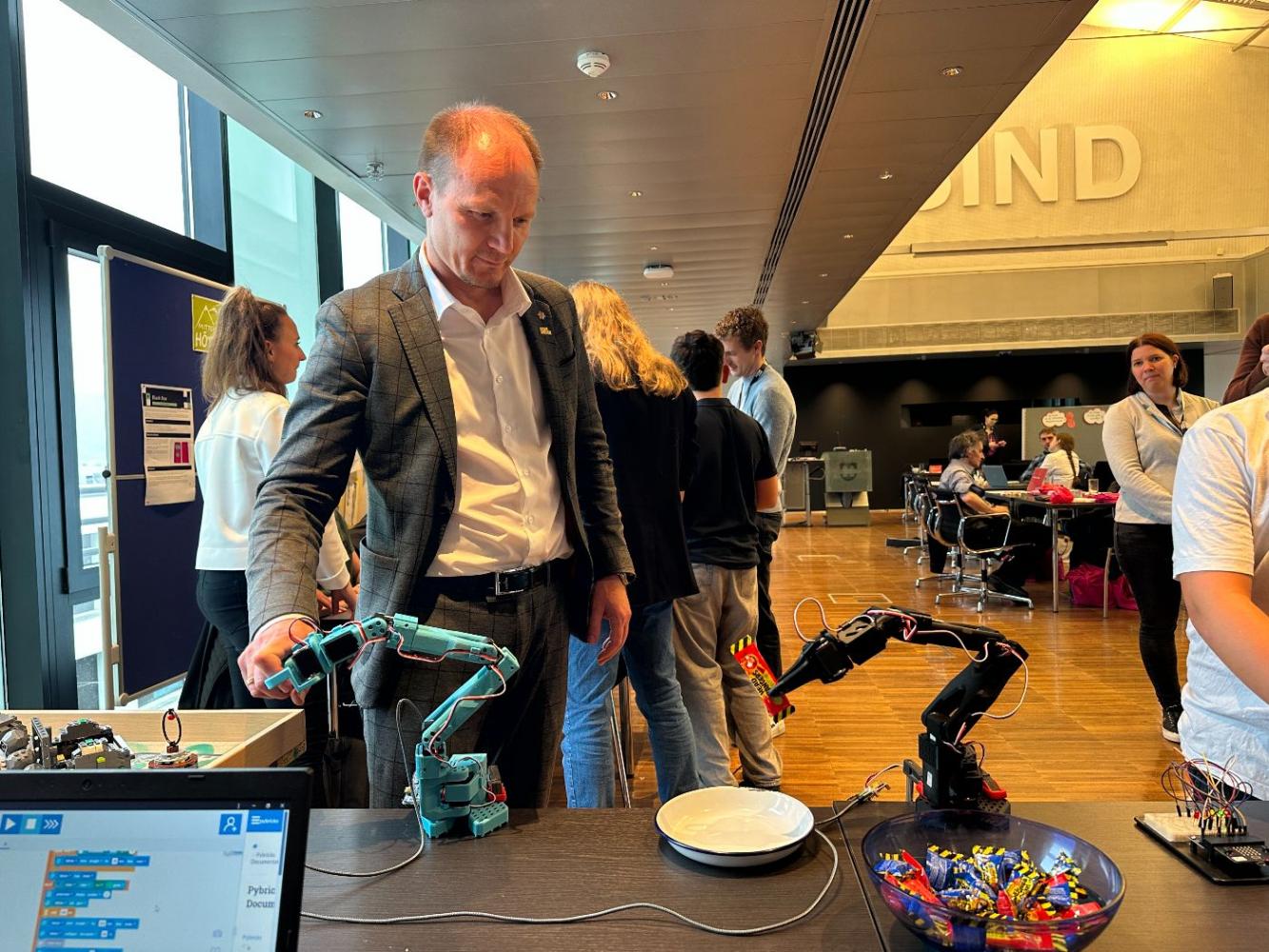 Am Dienstag, 14.04.2026, durften wir bei der Veranstaltung „Magistrat in Bewegung“ unsere Schule präsentieren. Wir freuten uns sehr, dass sich unser Hr. Bürgermeister Herr Johannes Anzengruber und unsere Vizebürgermeisterin Frau Elisabeth Mayr und viele andere Besucher*innen für unsere schulischen Schwerpunkte interessierten.