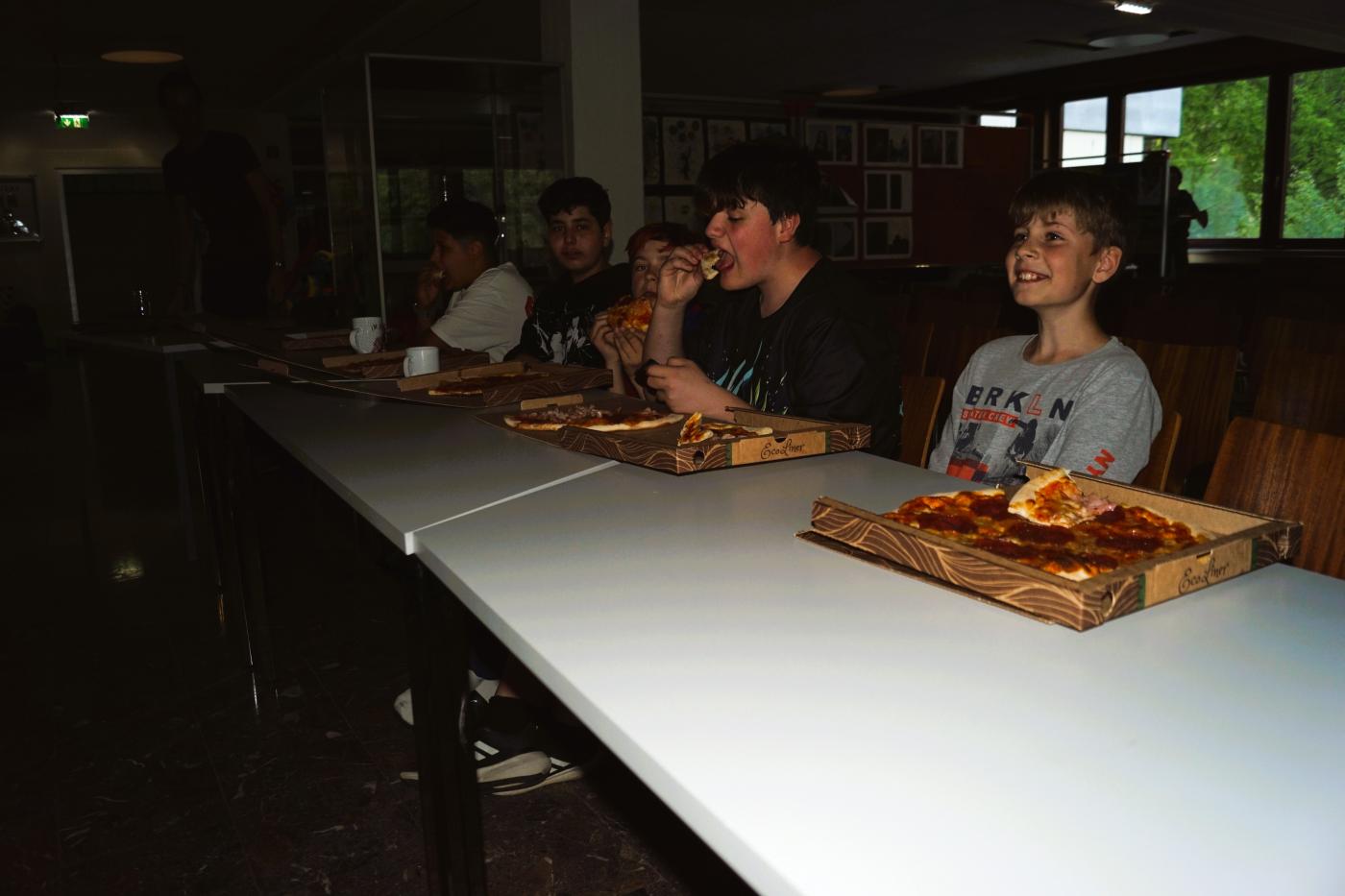 Nach dem Filmen und Schneiden war eine wohlverdiente Pause angesagt und es wurde genüsslich Pizza gegessen.