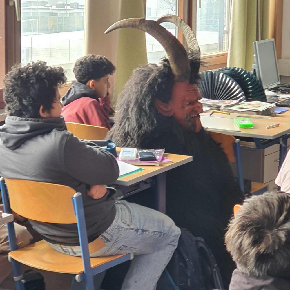 Für große Aufregung sorgte am vergangenen Freitag der besondere Besuch an der MS Hötting-West: Nikolaus und Krampus machten auf ihrer traditionellen Runde Halt an der Schule und brachten vorweihnachtliche Stimmung in die Klassen.
